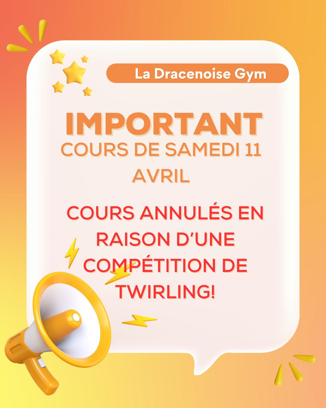 Annulation cours du samedi 11 Avril 2026